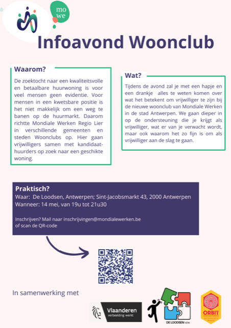 We zoeken vanuit Mondiale Werken vrijwilligers om een nieuwe woonclub te starten voor de stad Antwerpen. Een woonclub wil mensen in een kwetsbare positie helpen een woning te vinden op de huurmarkt.