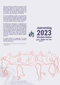 Benieuwd naar onze projecten, activiteiten, werking en reilen in 2023? Of gewoon nieuwsgierig naar al waar we ons mee bezig houden? Het Jaarverslag 2023 van Mondiale Werken Regio Lier vzw geeft een volledig en gedetailleerd overzicht van al haar diensten, projecten en activiteiten. Eveneens biedt het een unieke blik in de werking en structuur van de vrijwilligersorganisatie die zich al sinds 2016 inzet voor asielzoekers, vluchtelingen, daklozen en alle anderen die haar hulp kunnen gebruiken.