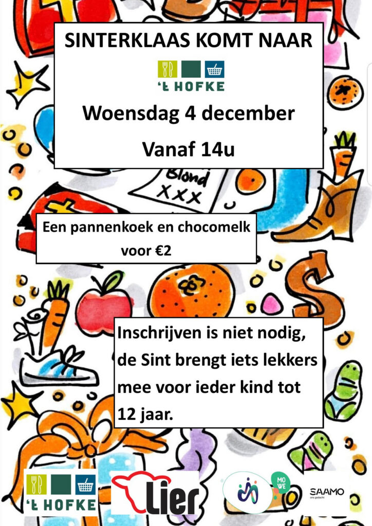 ← Meer nieuws Cultuur & Vrije tijd Sinterklaas in restaurant ’t Hofke 17 november 2024 Naar jaarlijkse traditie komt de Goedheilig Man naar sociaal restaurant ’t Hofke in Lier. Hieronder meer info: