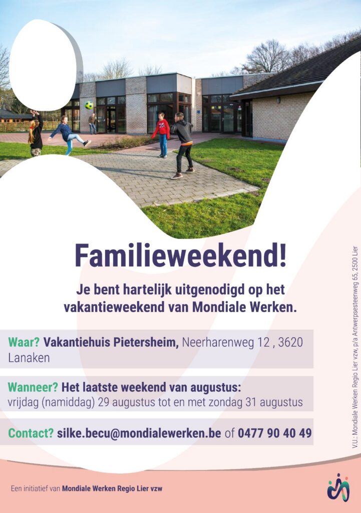 ’s Zomers laatste weekend gaat Mondiale Werken naar jaarlijkse traditie op Vakantieweekend met medewerkers, vrijwilligers, sympatisanten en met mensen die we geholpen hebben. Ook u bent van harte welkom. Alle informatie vindt u in de flyer hieronder. Tot dan!